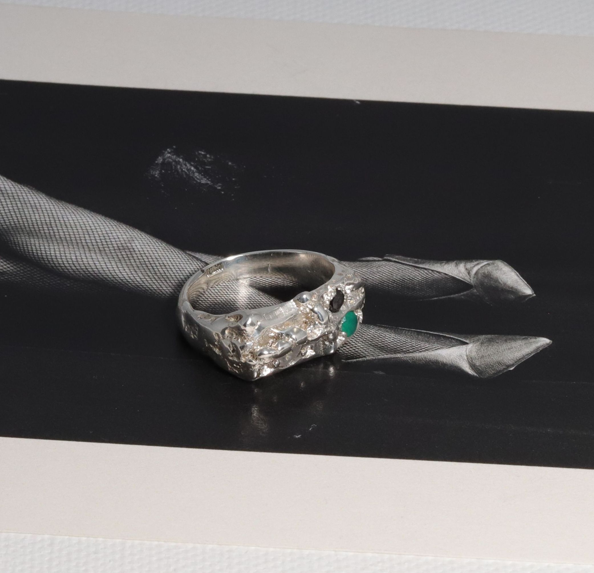 Lunar Dream Ring henter sin form fra månenatten, med små bløde niveauforskelle der modelleres i voks. Støbningen fastholder de runde skygger og ujævnheder, og i værkstedet gives ringen en jævn afslutning, så den er behagelig at bære. Designet er let, drømmende og skabt til daglig brug. Ringen findes i 925 genanvendt sterling sølv eller med 14/18K guldbelægning på ca. 1,5 micron for en varm glød.